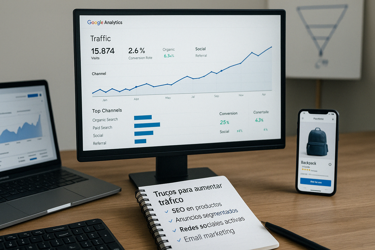 Si tenés una tienda online y sentís que las visitas no crecen, no estás solo. Aumentar el tráfico es uno de los mayores desafíos para cualquier ecommerce. La buena noticia es que no necesitás un presupuesto millonario ni campañas complicadas: con estrategias simples pero bien aplicadas podés atraer más usuarios y aumentar tus ventas.