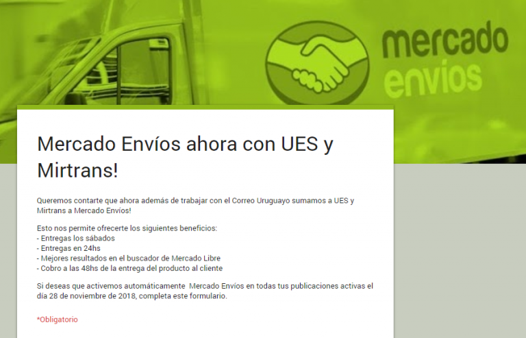 O Mercado Libre anunciou em novembro de 2018 que adicionou seus colaboradores logísticos do Mercado Envios no Uruguai às empresas UES e Mirtrans. O que sem dúvida segue o